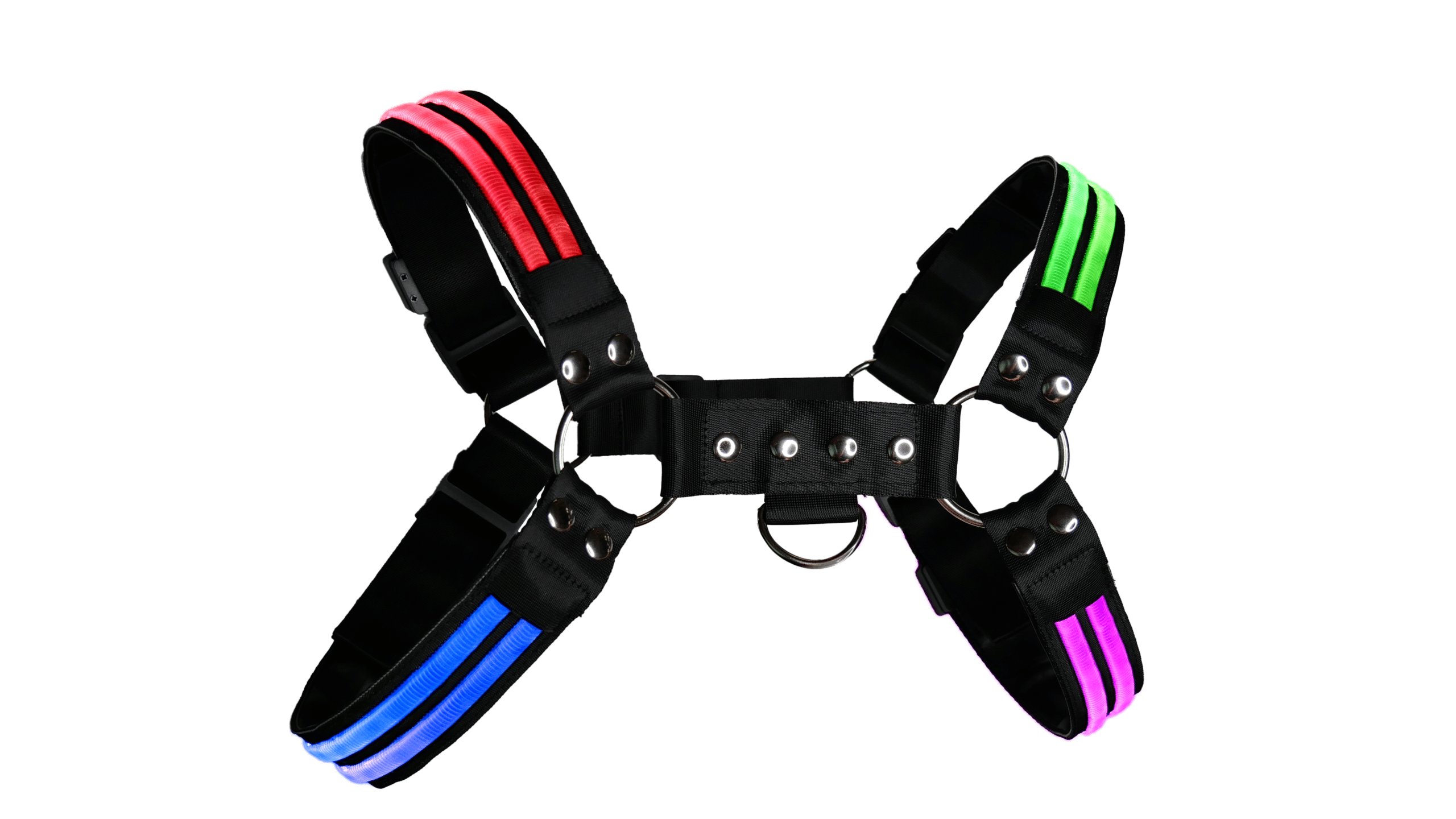 Great LED Harness (Even for Women!) I bought this for a Pride event and it worked perfectly. The multiple led colors let me switch up my colors whenever I felt like it. Even as a women the fit was good, and didn’t get uncomfortable. Lights easily lasted through the 5 hour event.